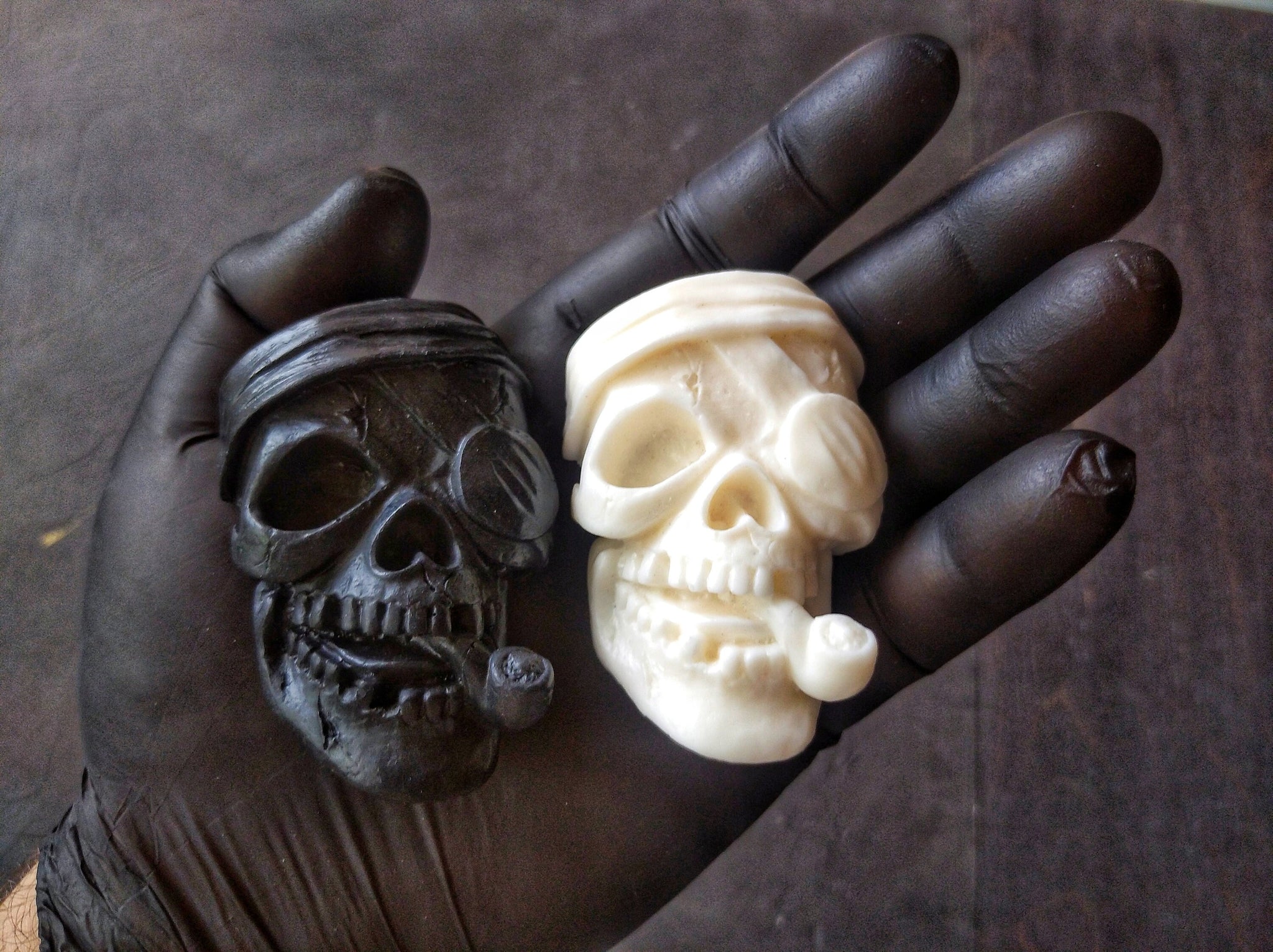 Handmade Pirate skull with a pipe silicone mold, aquarium decor, resin skull applique, skull decore, skull with bandage